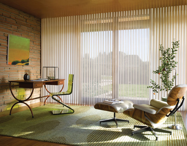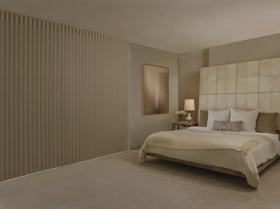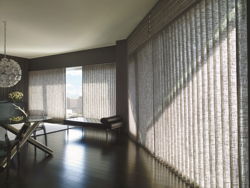 Luminette Privacy Sheers marry the beauty of sheers with the privacy of soft draperies. Available in a side or split stack design, these vertical sheer window treatments are especially suited for larger windows. They provide the widest range of light control possible, with a sheer face fabric to let light in and attached soft fabric vanes that rotate to keep light and prying eyes out. Available as semi-opaque or room darkening in seven, elegant fabrics.