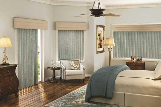 Let the originality and beauty of Hunter Douglas Cadence Soft Verticals compliment any style of room from traditional to contemporary. With their patented curved vanes, mimicking soft drapery folds that tilt effortlessly and move smoothly and quietly along their track, these soft verticals give an elegant look. Designed with a contoured head rail and double tiered valence to reduce light gaps.